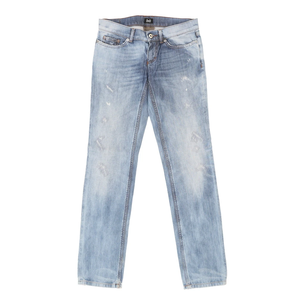 Vintage Dolce & Gabbana blue jeans, fit a UK 6 – 30 inch / 76 cm waist.