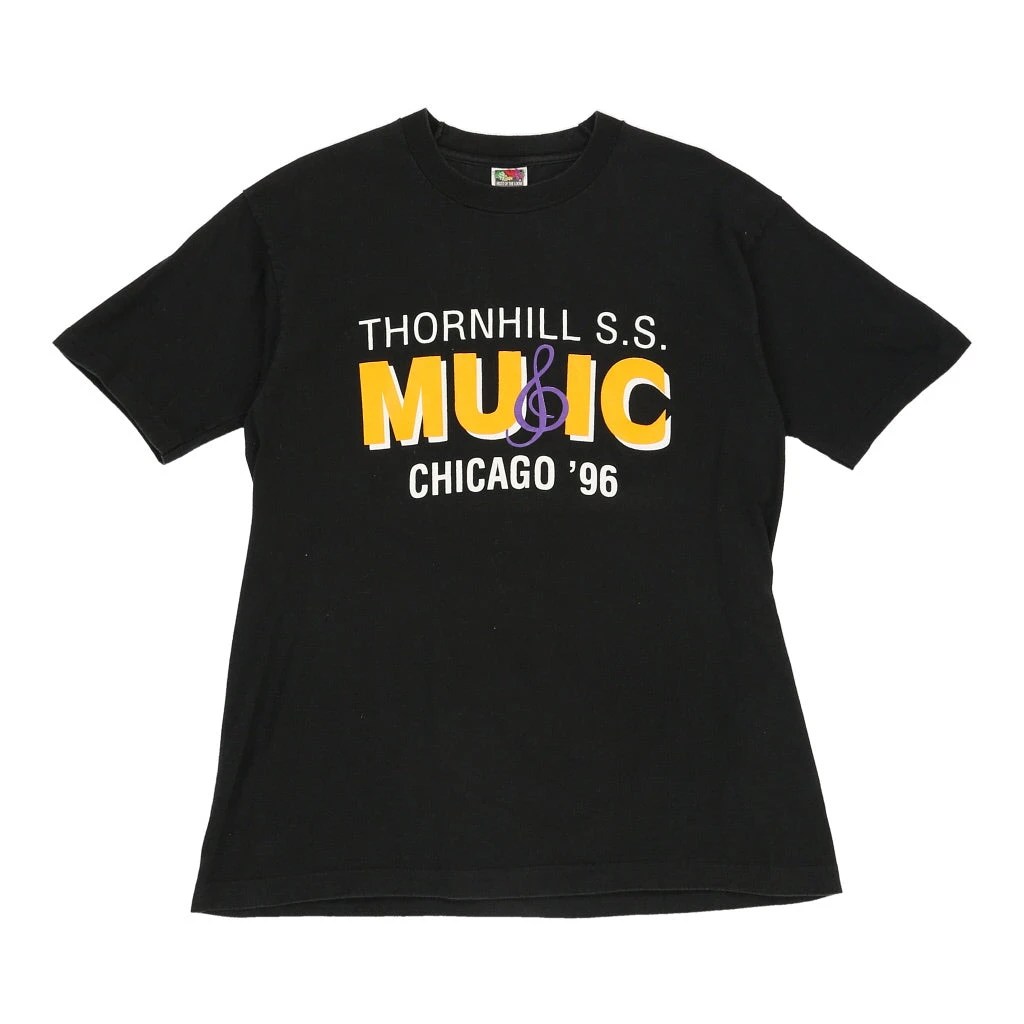 Vintage black Fruit Of The Loom t-shirt, fits large.