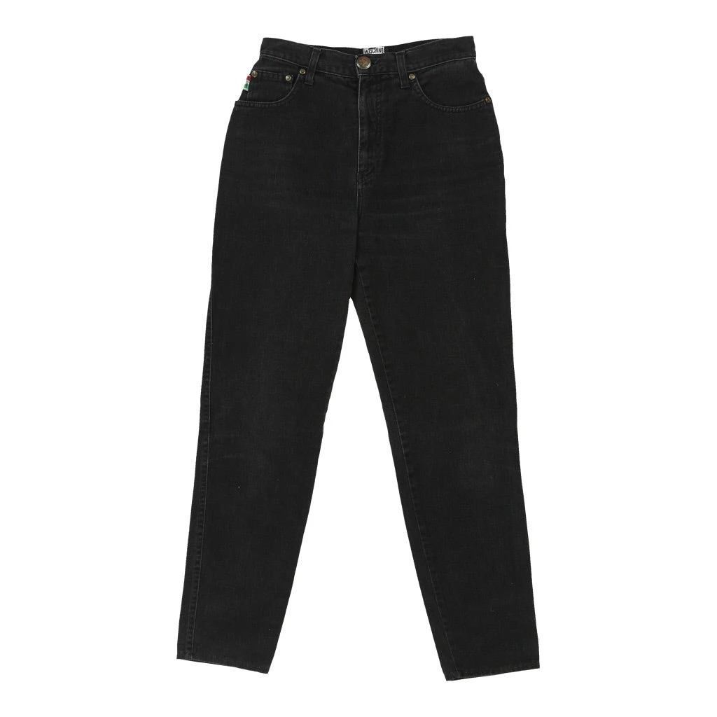 Vintage Moschino black high waisted jeans, fit a UK 8 – 28 inch / 71 cm waist.