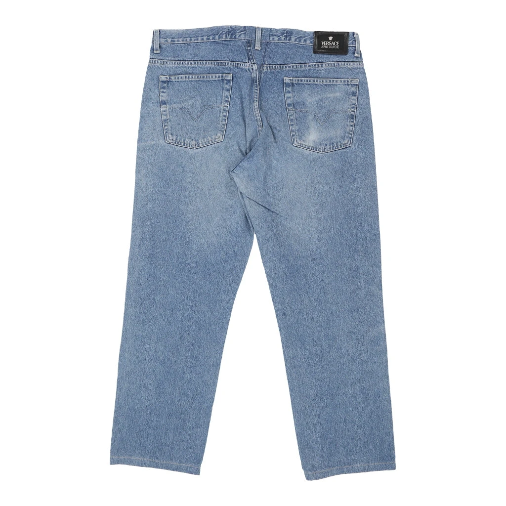 Vintage Versace blue high waisted jeans, fit a UK 20 – 37 inch / 94 cm waist.